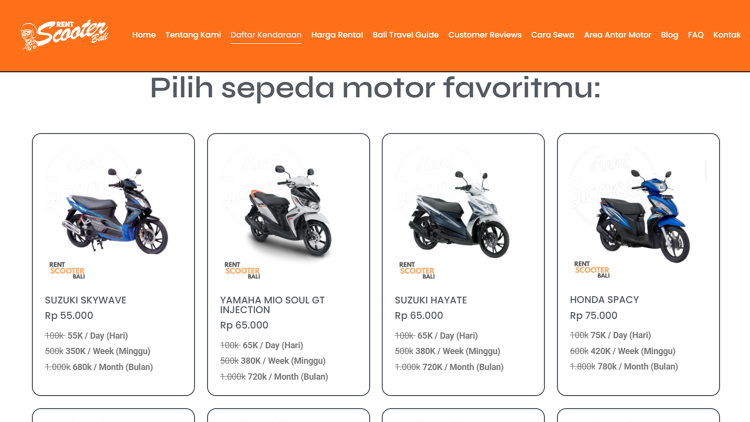 Sewa Motor Matic Bali adalah penyedia layanan penyewaan skuter online terpercaya di Pulau Bali.